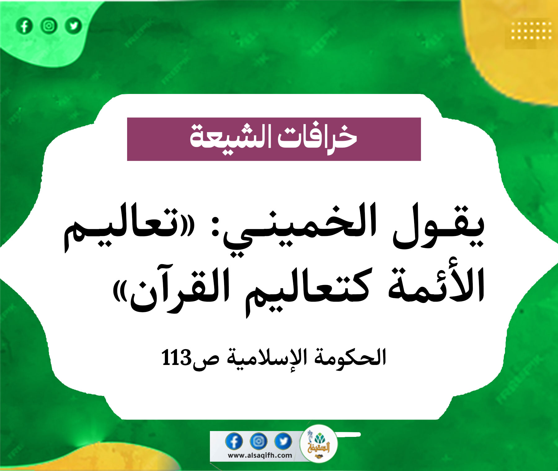 الخميني الهالك يصف الصحابة وعائشة بأنهم «أخبث من الكلاب والخنازير»