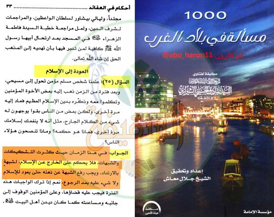 خرافة شيعية تزعم سقوط حكم الردة عن الخارج بالشبهة