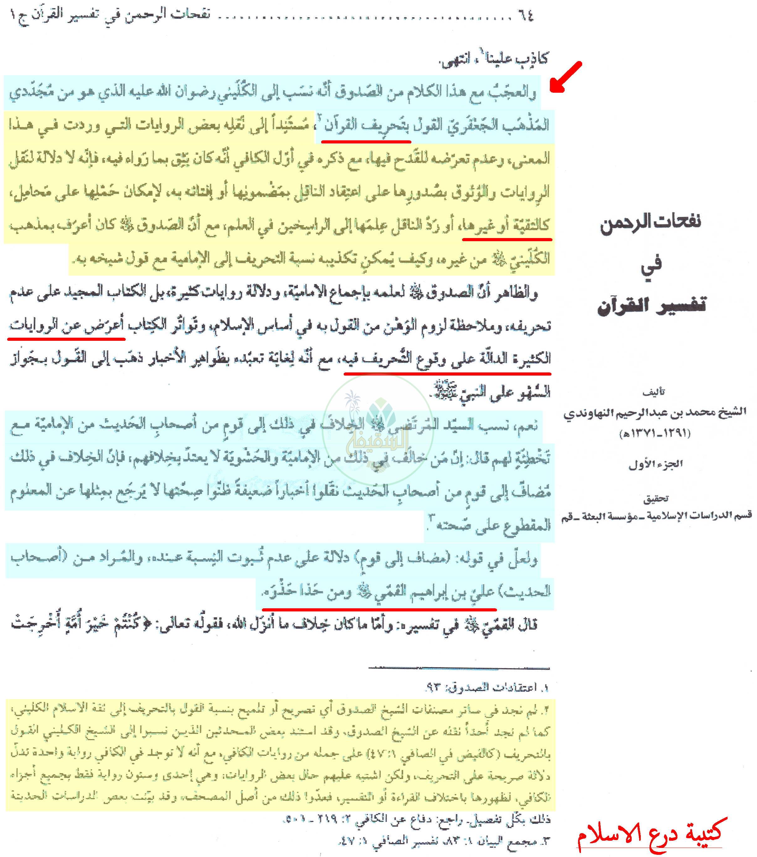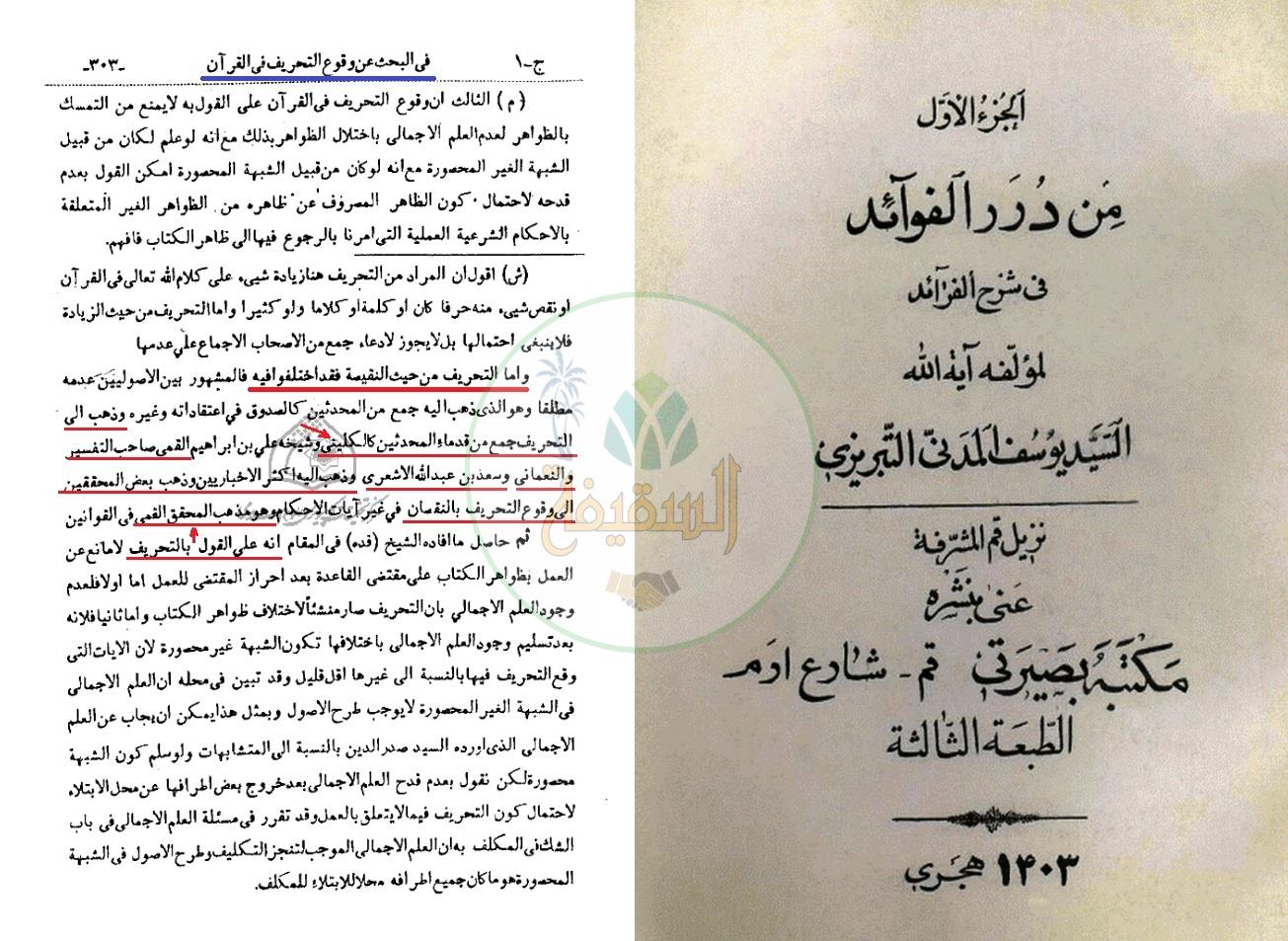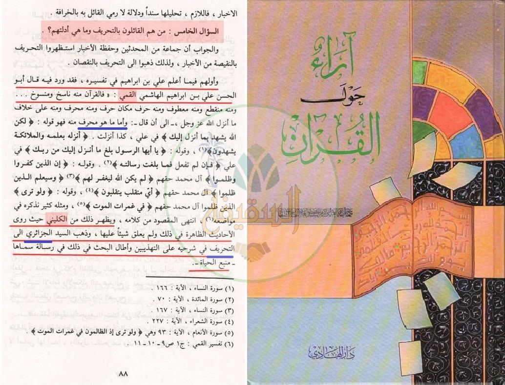 اعتقاد الكليني بالتحريف عند أبو القاسم القمي – التحريف والزيادة والنقصان في القرآن