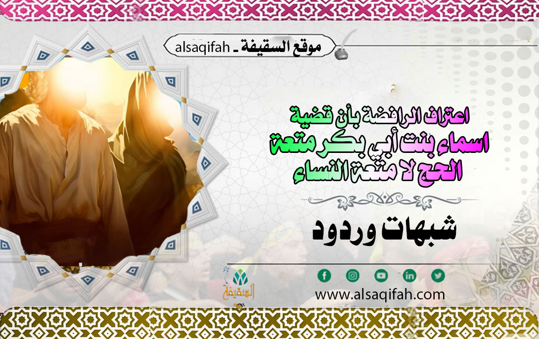 اعتراف الرافضة بأن قضية اسماء بنت أبي بكر متعة الحج لا متعة النساء