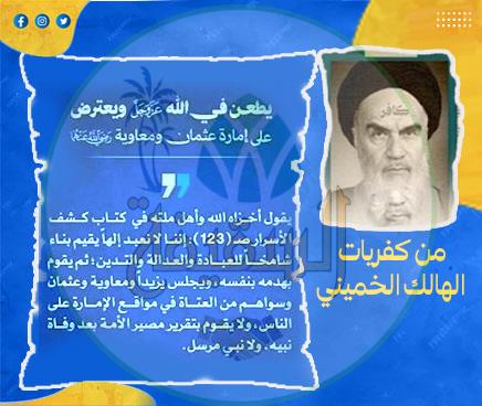 من كفريات الخميني في التعدي على الله عز وجل والطعن في عثمان رضي الله عنه