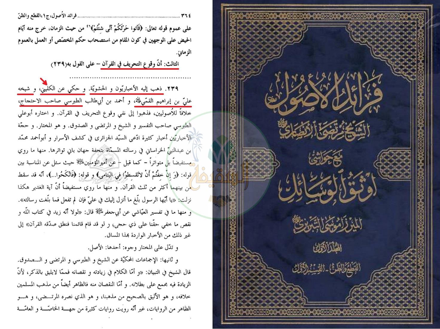 اعتقاد الكليني بالتحريف عند أبو القاسم القمي – التحريف والزيادة والنقصان في القرآن